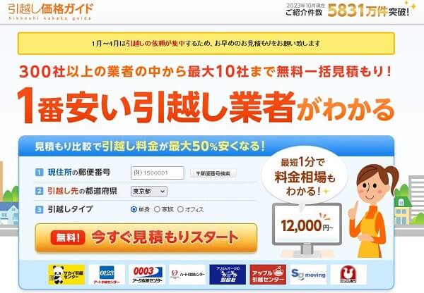 引越し価格ガイドは300社が参加しており、10社まで見積もりが可能なので、その中で1番安い引越し料金を見つけることも可能です。